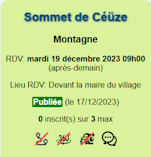 PS: même si l'organisateur se voit offrir la possibilité de déclarer comme participants des invités non inscrits il est important de rappeler que pour participer à une sortie l'inscription est obligatoire.